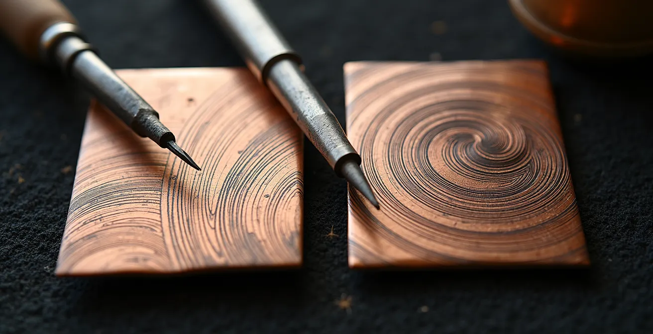 Die Wahl zwischen Kupferstich und Kaltnadel ist keine Frage der Technik, sondern eine Entscheidung über das Schicksal und den Charakter Ihrer gezeichneten Linie.