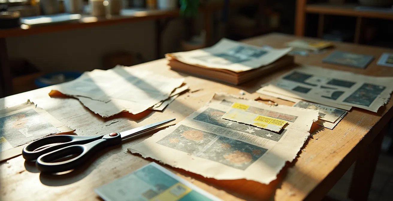 Der Geruch von altem Papier, die vergilbte Textur einer Zeitschrift aus den 70er-Jahren – für Collage-Künstler sind dies keine Relikte, sondern Schatztruhen voller Möglichkeiten. Doch auf den kreativen Rausch folgt oft die rechtliche Ernüchterung: Darf ich dieses Foto aus einem alten „Stern“-Magazin ausschneiden, in mein Werk einarbeiten und es dann verkaufen? Die üblichen Ratschläge wie „nutze nur gemeinfreie Bilder“ oder „verändere es stark“ sind oft zu vage und gehen an der Realität des analogen Schaffensprozesses vorbei. Sie lassen die zentrale Frage unbeantwortet, die im Atelier wirklich zählt.