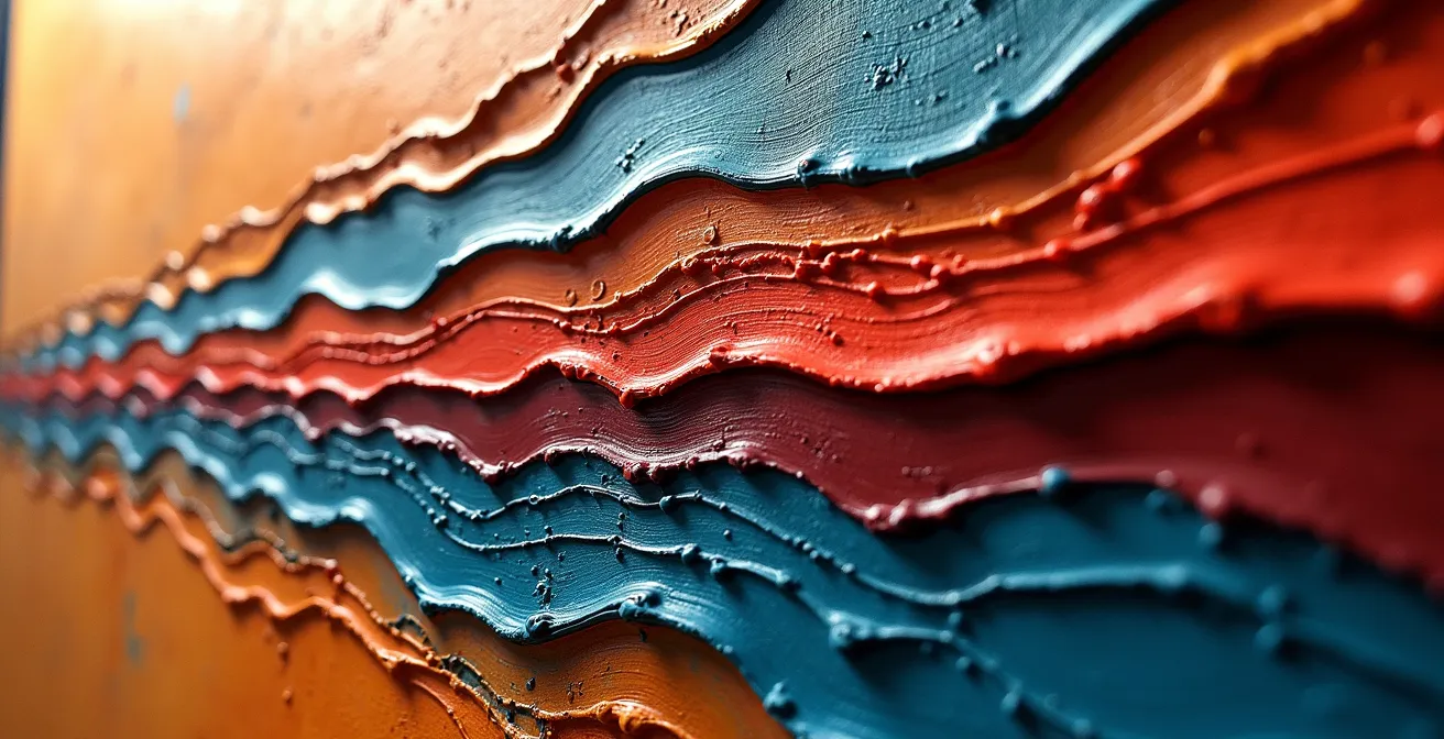 Wut ist eine kraftvolle, nach außen gerichtete Energie. Sie staut sich im Körper an und verlangt nach Entladung. Der Versuch, diese intensive Emotion mit feinen, kontrollierten Pinselstrichen zu kanalisieren, ist wie der Versuch, einen Waldbrand mit einer Wasserpistole zu löschen – es ist das falsche Werkzeug. Der Impuls der Wut ist es, zu stoßen, zu schieben oder zu zerreißen. Techniken wie das Spachteln, Kratzen oder kraftvolle Auftragen dicker Farbschichten entsprechen diesem körperlichen Impuls. Sie erlauben einen direkten, somatischen Ausdruck, bei dem die aufgestaute Energie aus den Muskeln über den Arm und das Werkzeug direkt auf die Leinwand übertragen wird.